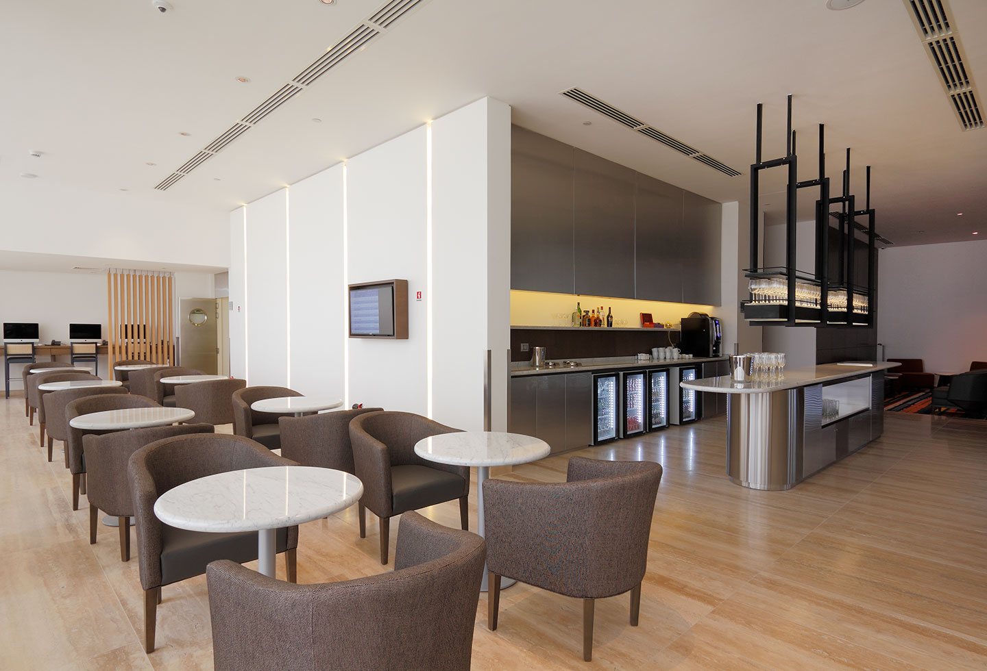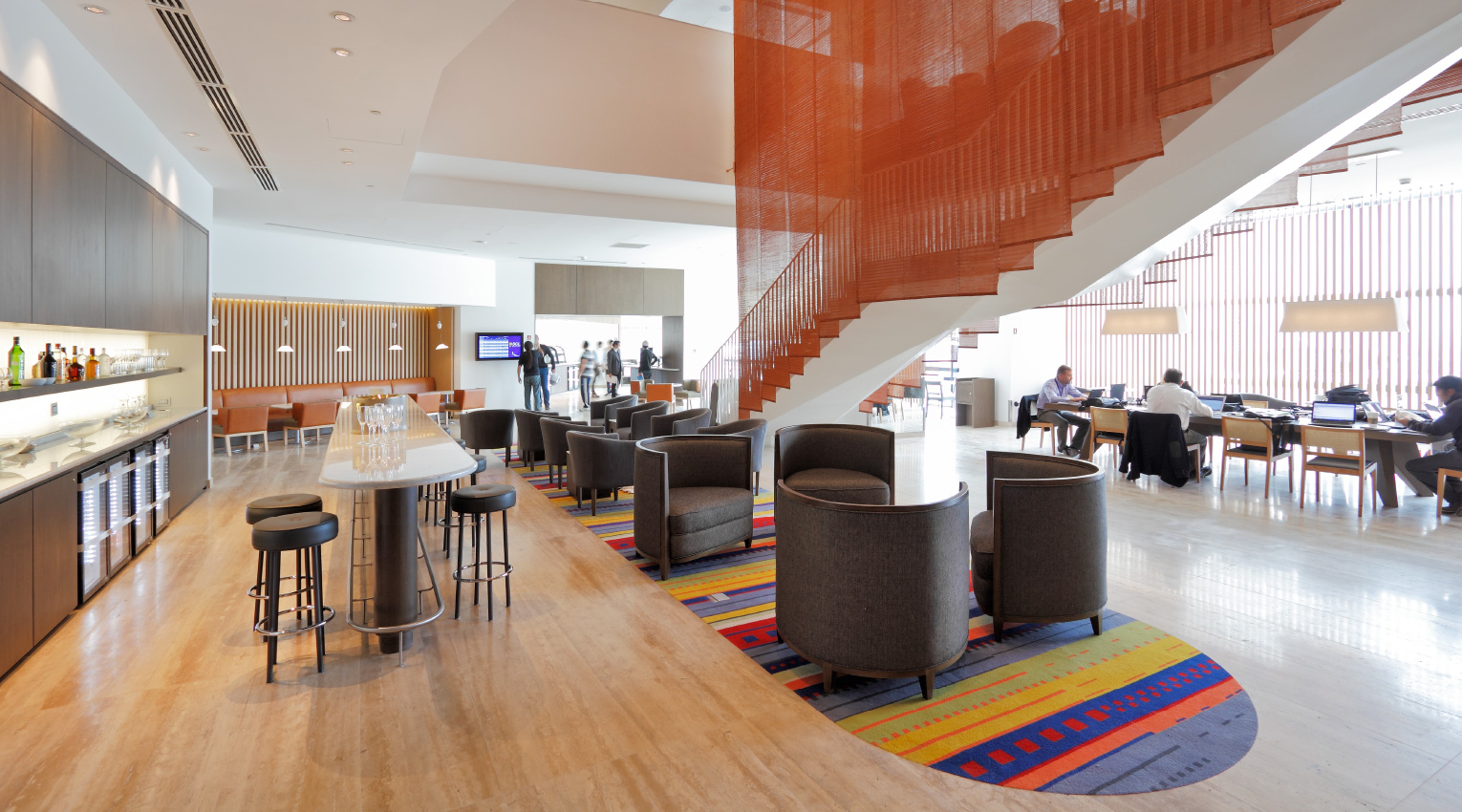 Desafío estructural para corte de losa, estructuras metálicas vistas y ejecución de terminaciones de altísimo nivel, importadas y fabricadas de forma personalizada para el cliente. Alta complejidad para anexar este nuevo recinto a la infraestructura existente del aeropuerto en sinergia con la operación de este.