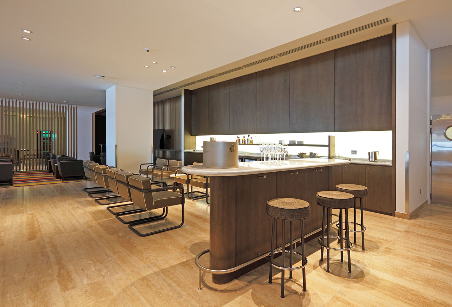 Habilitación de 1800 m2 en el terminal internacional del aeropuerto AMB, en 2013. Arquitectura a cargo de Mathías Klotz y Lilian Allen.